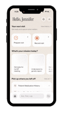 Appointment Recording and Visit Summaries Record any conversation that matters – doctor appointments, specialist visits, video calls, IEP meetings – directly in the app. AI Advocate generates a summary of key information, follow-ups, and next steps, all cross-referenced against your complete medical history. No more choosing between listening and remembering.